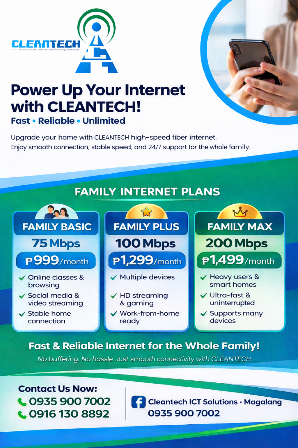 While CleanTech Internet Provider strives to maintain stable internet service, temporary interruptions may occur due to maintenance, technical issues, weather conditions, or other factors beyond our control.
